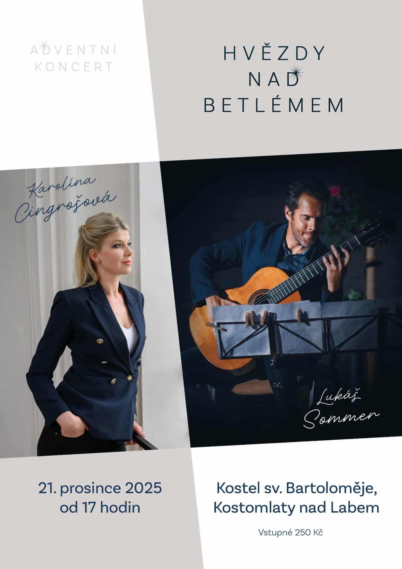 Závěrečným koncertem letošních úspěšných adventních koncertů v kostele sv. Bartoloměje v Kostomlatech nad Labem bude vystoupení kytaristy Lukáše Sommera se sopranistkou Karolínou Cingrošovou.