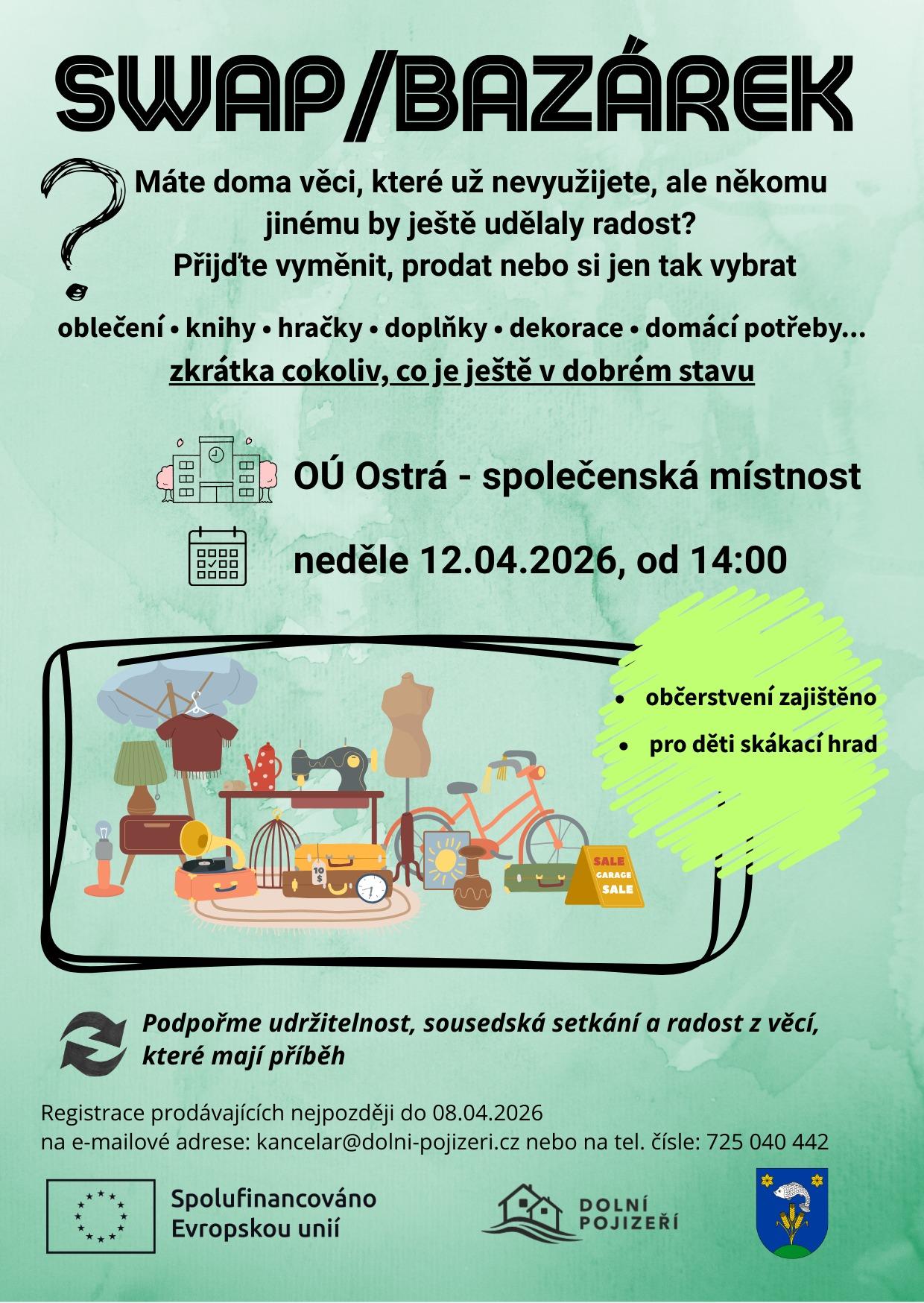Máte doma věci, které už nevyužijete, ale někomu jinému by ještě udělaly radost? Přijďte vyměnit, prodat nebo si jen tak vybrat - v neděli, 12.4. od 14.00 hodin ve společenské místnosti OÚ Ostrá